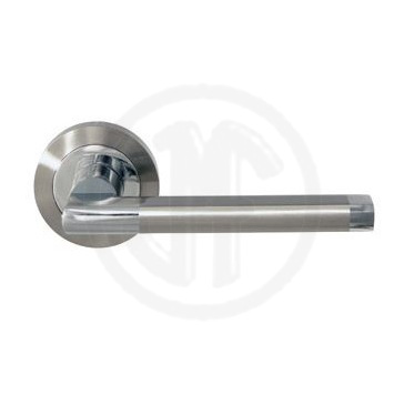 Manivela roseta fabricada en combinación de aluminio cromado y niquel satinado.